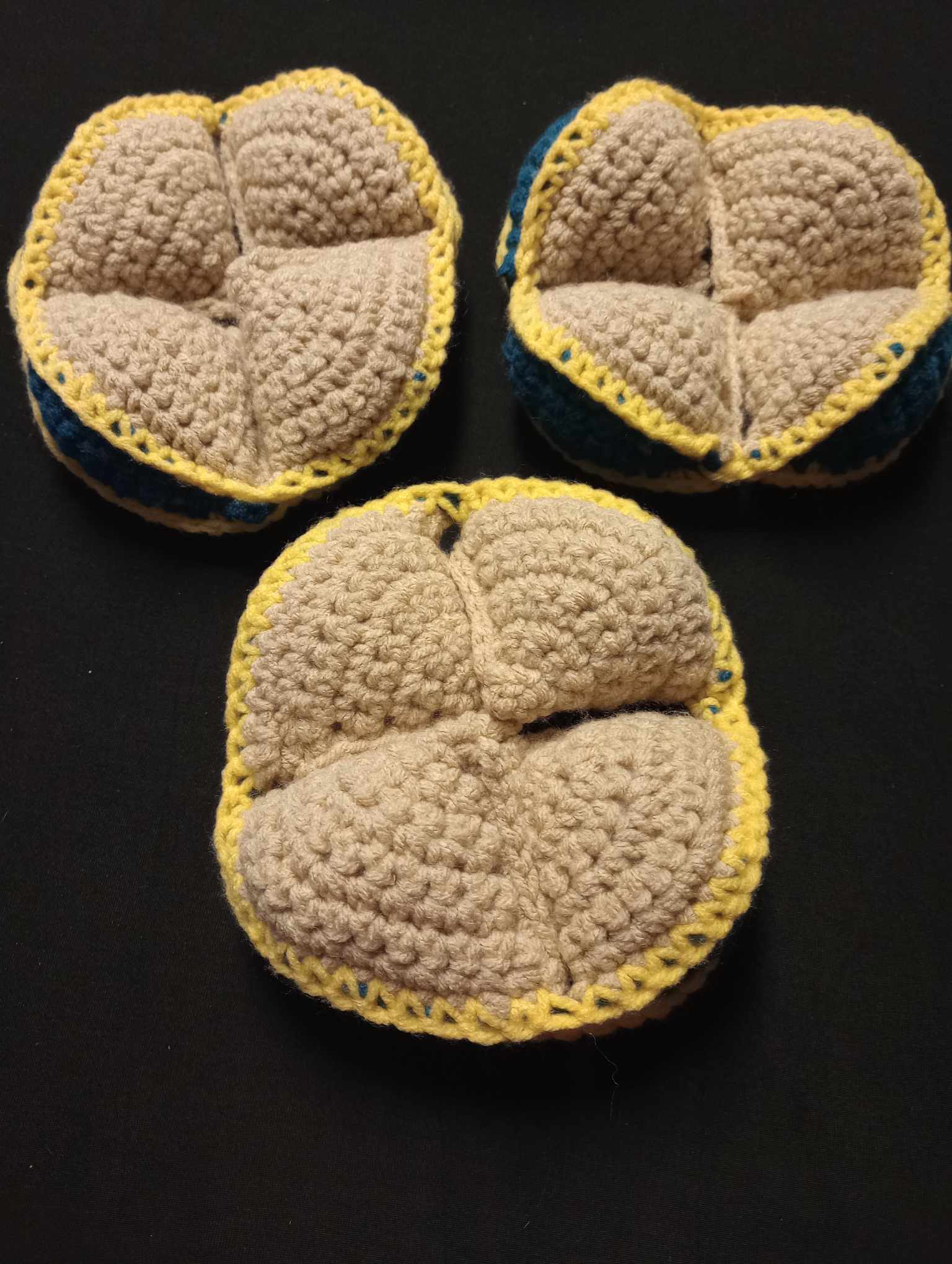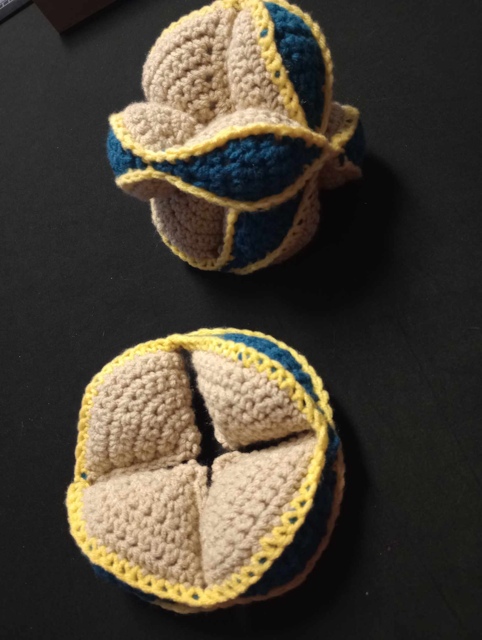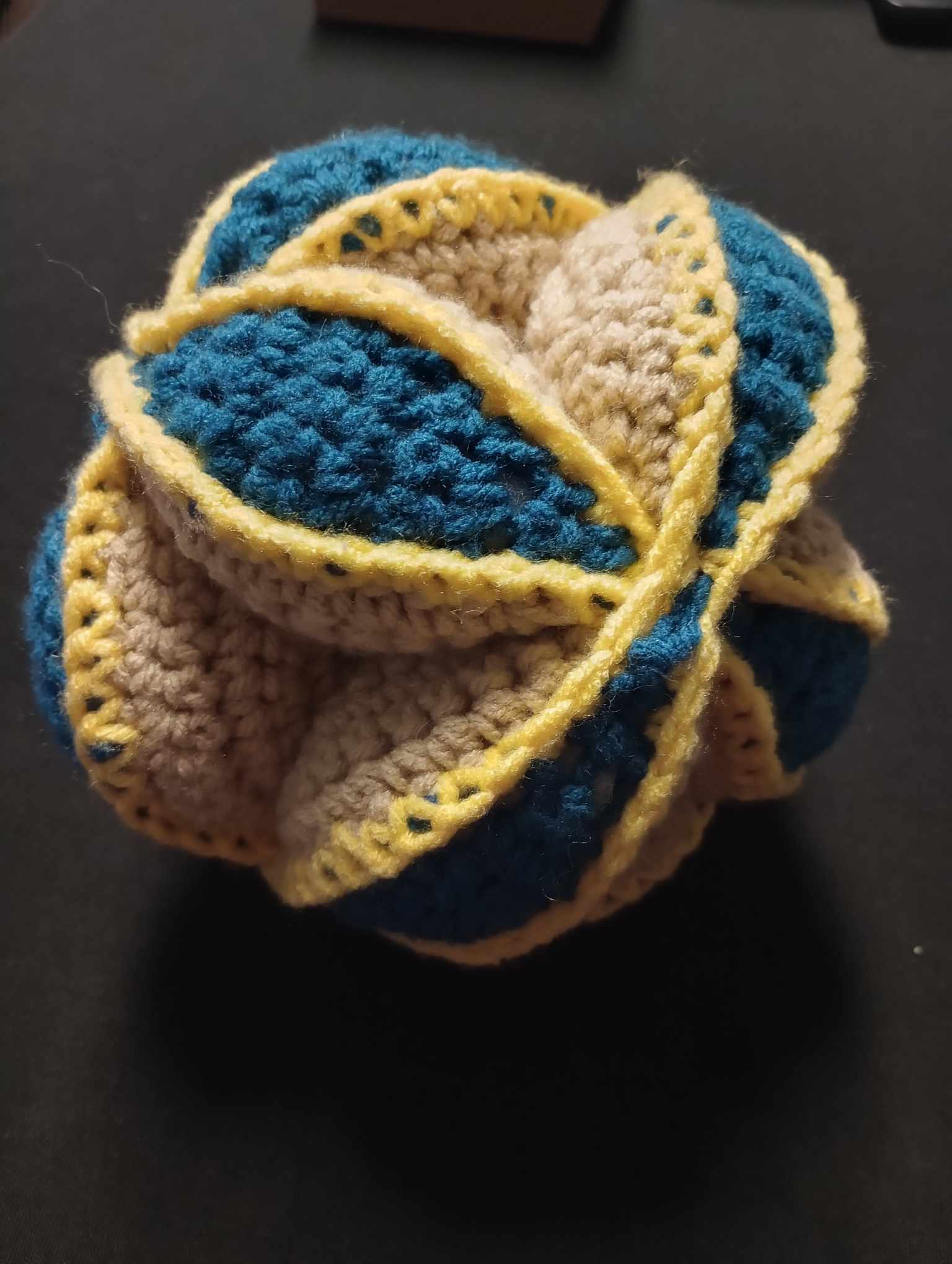 This handmade crochet Amish Puzzle Ball is three circles that fit together to make a ball. Great gift for kiddos to work on skills such as;