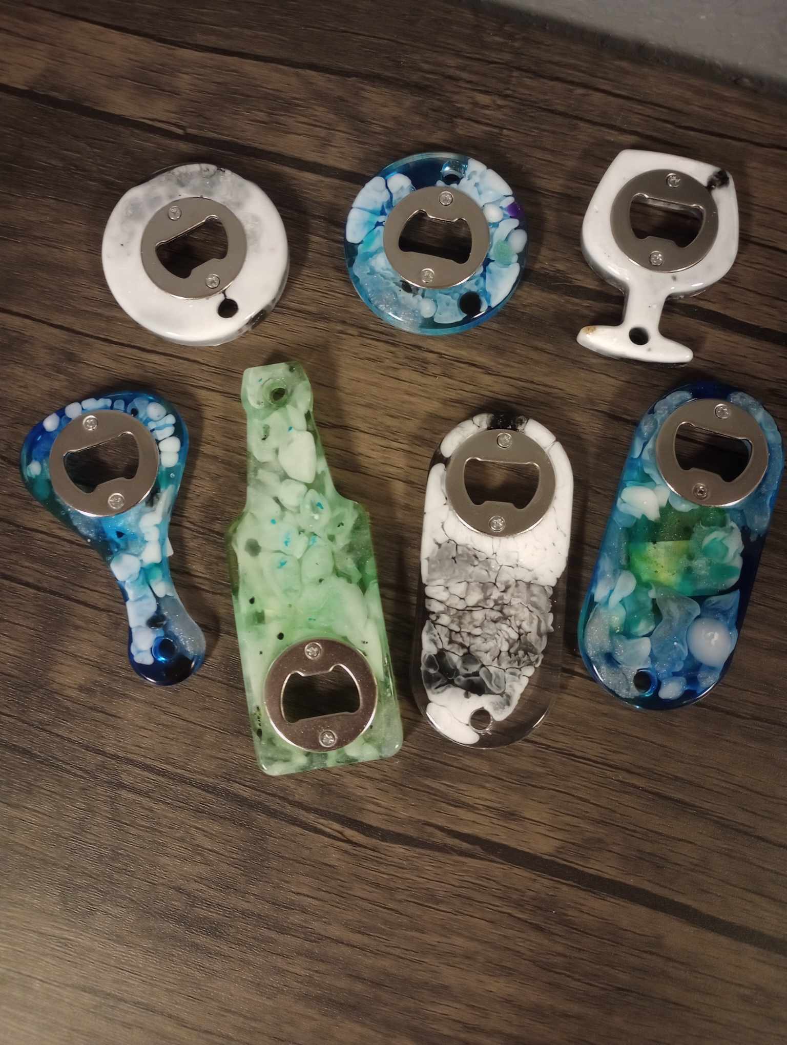 These handmade bottle openers are a unique gift for anyone! We offer a variety of colors, shapes and designs.