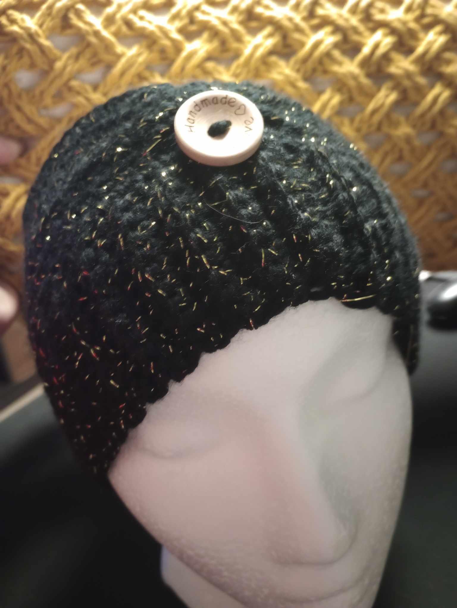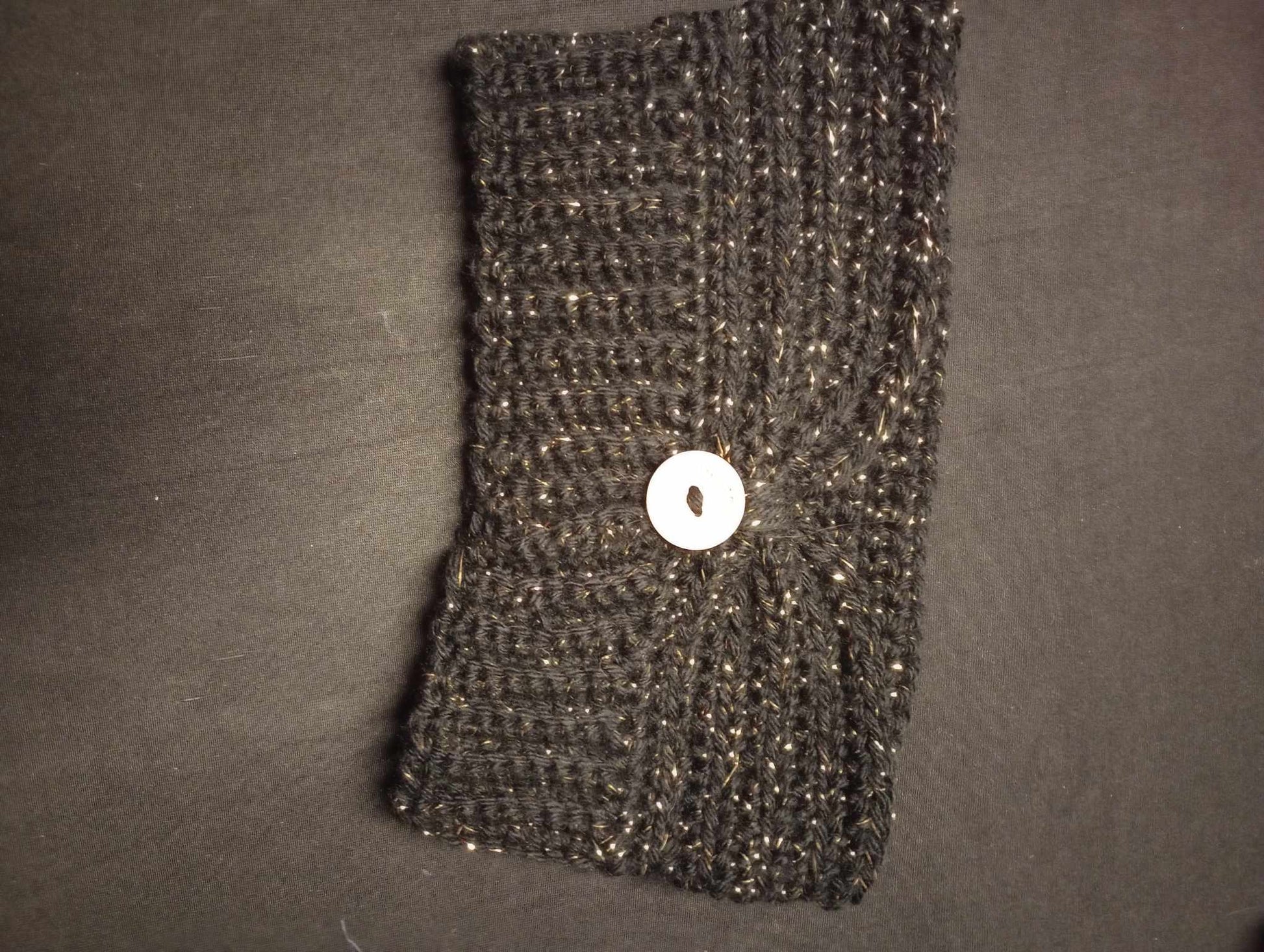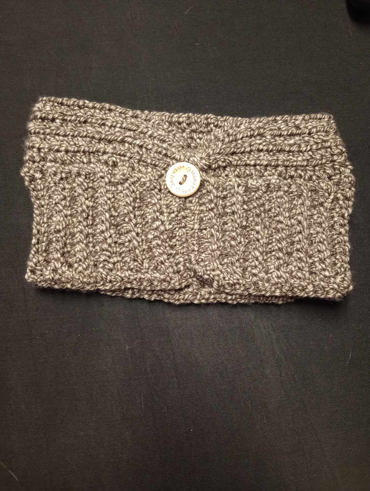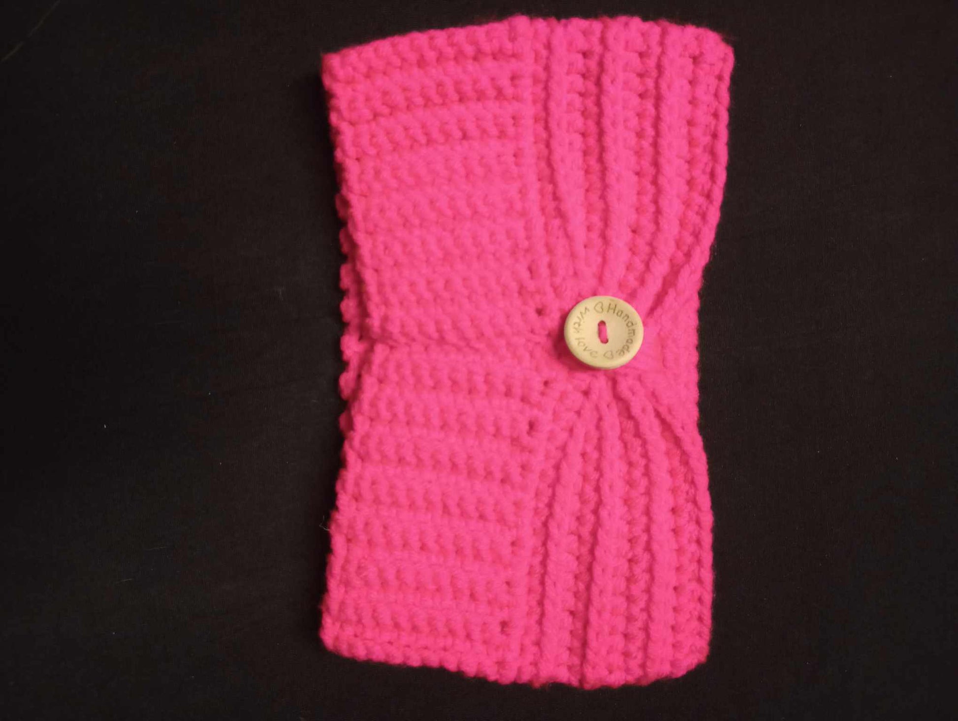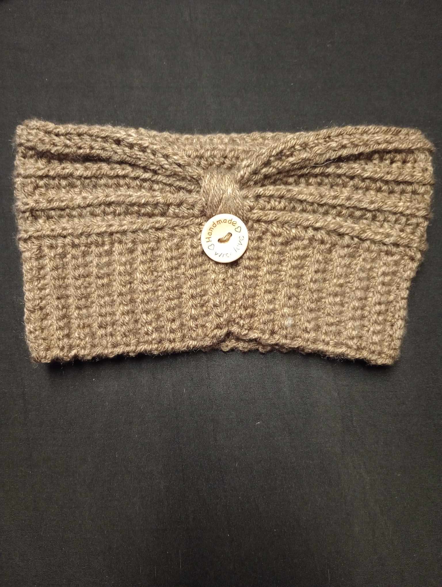This handmade headband is great for anyone that wears their hair in pony tails or buns. Keeps your ears toasty warm and is trendy as well.