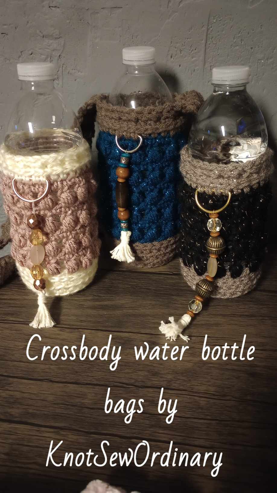 This handmade crochet crossbody water bottle carry bag is a great and fashionable way to carry your water bottle while out shopping, on a tour, walking or wherever